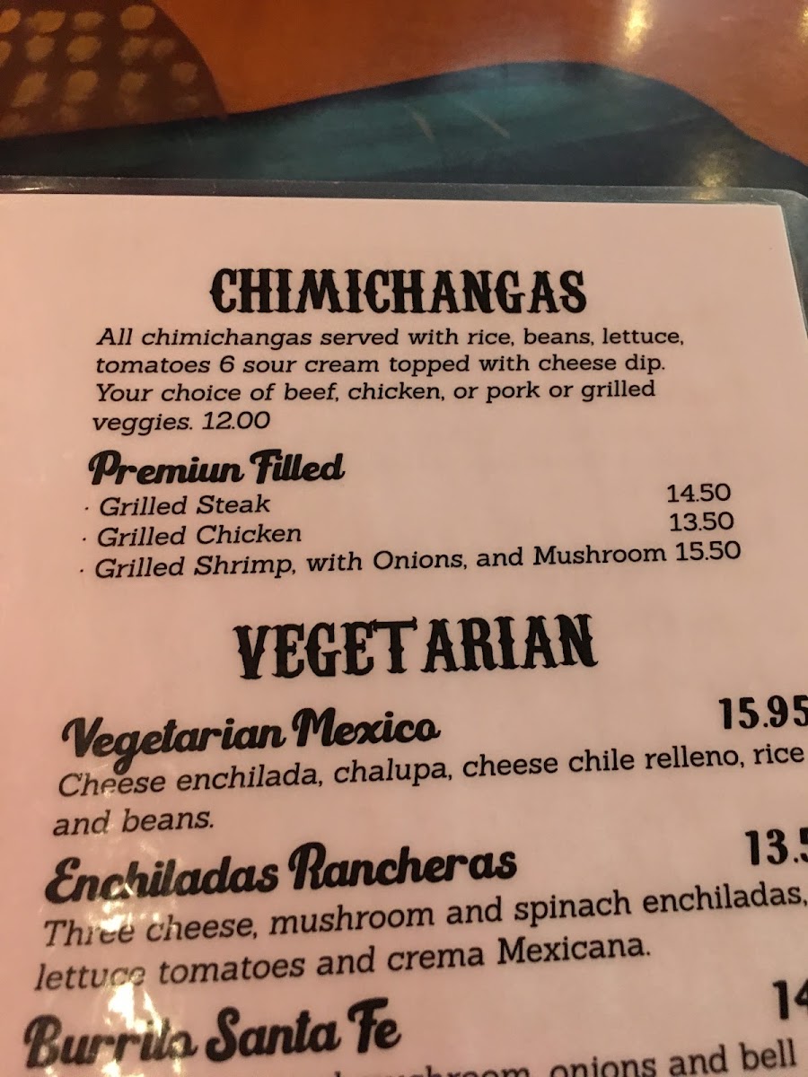 Stuffed with seasoned beef, chicken or pork, rice and beans, topped with hot Chile sauce and melted cheese.
