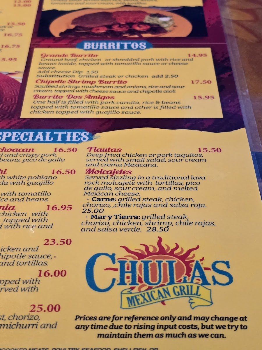 The atmosphere is lively, complemented by beautiful décor and lively music, making every visit memorable. Experience the warmth and flavors of Chulas; you won’t be disappointed!